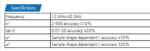 [Features]KEYCOM provides S-parameter method measurement systems in two modes, the reflection mode and the transmission mode, to address the individual purposes. Both modes measure the complex permittivity (¥år) and complex permeability (¥ìr) at the same time, and the proper usage is as follows. The optional software DMP-70 calculates the absorption ratio and the reflection ratio of electromagnetic absorbers based on the complex ¥år and complex ¥ìr.* Reflection mode* - Suitable for measurements of thin specimens (less than 2 mm in thickness). - Measures the specimens with small dielectric loss tangent with high precision relative to the transmission mode (min value: 0.01).* Transmission mode* - Suitable for measurements of thick specimens (larger than 2 mm in thickness). - Also suitable for specimens with relatively large dielectric loss tangent (0.1 or more).And More... - Permittivity, dielectric loss tangent and complex permeability are graphically displayed with frequencyon X axis and all data can be extracted and exported to Excel at ease. These enhanced functionalities will make your data processing and documentation such as thesis easier than ever. - Free space measurement is available with add-on kit. - Because the software DMP-70 is capable of incorporating the actual measurement vales, it only takes a click to simulate the electromagnetic wave absorption rate based on the actual measurement value of permittivity and permeability.