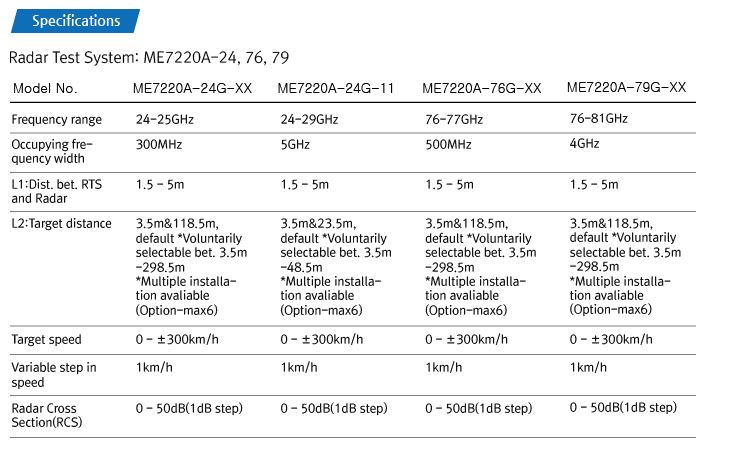 - 24GHz, 76.5GHz, 79GHz (RTS): ME7220A